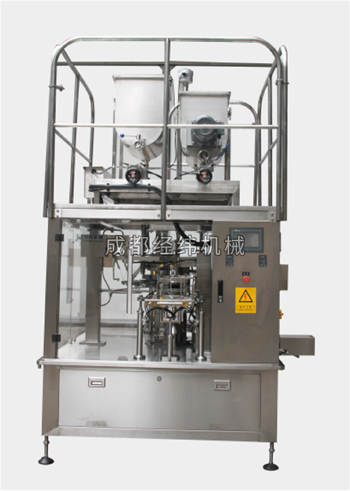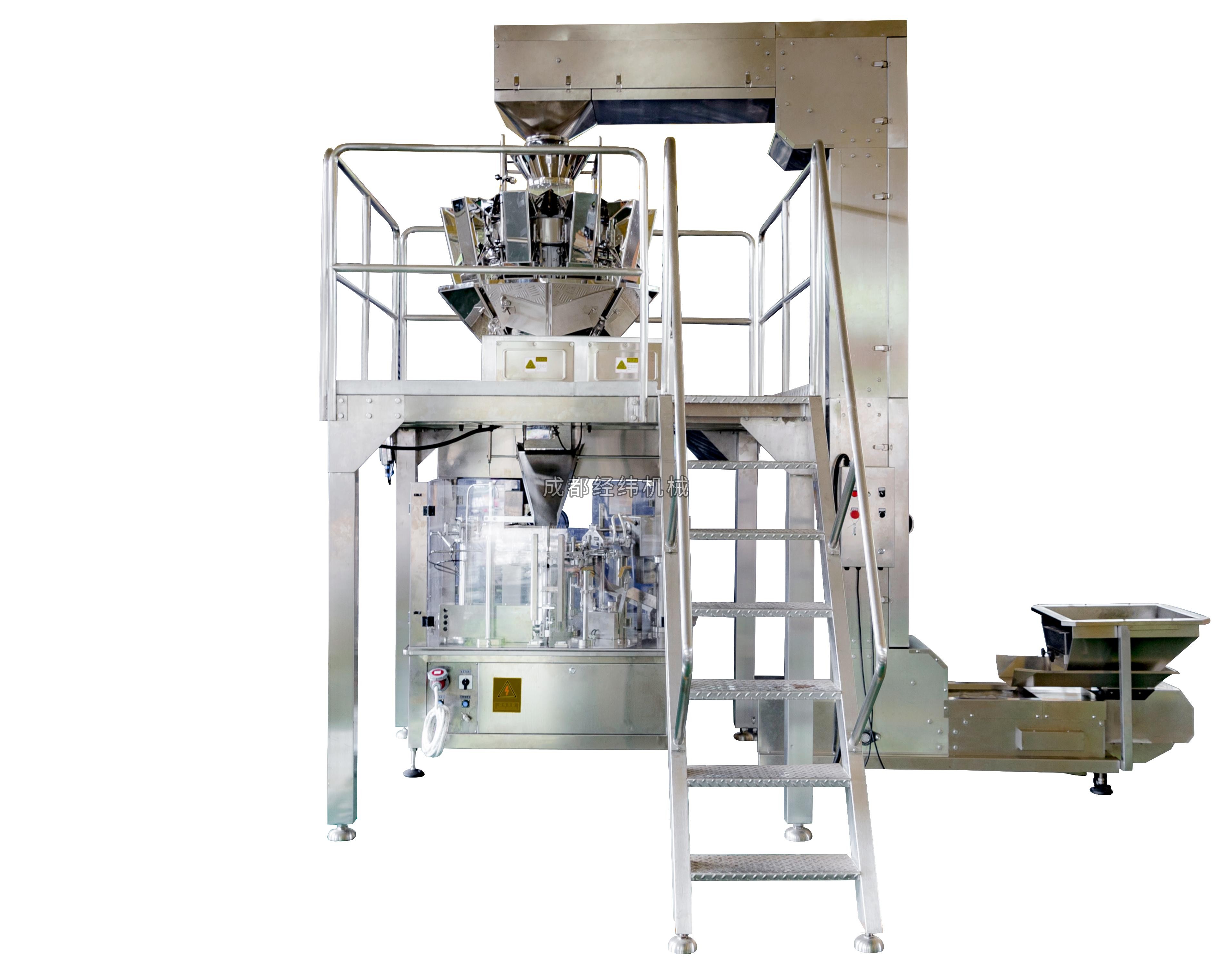4、下料方式:配多頭秤下料(固形物、顆粒)、螺桿下料(粉末)、氣動計量泵下料(醬體、液體)。